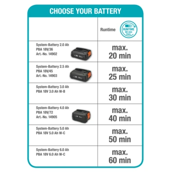 • Binnen het juiste accu platform zijn de accu’s universeel uitwisselbaar. Hierdoor is het Plug & Play tussen al het gereedschap en tuingereedschap van hetzelfde merk en uiterst gebruiksvriendelijk